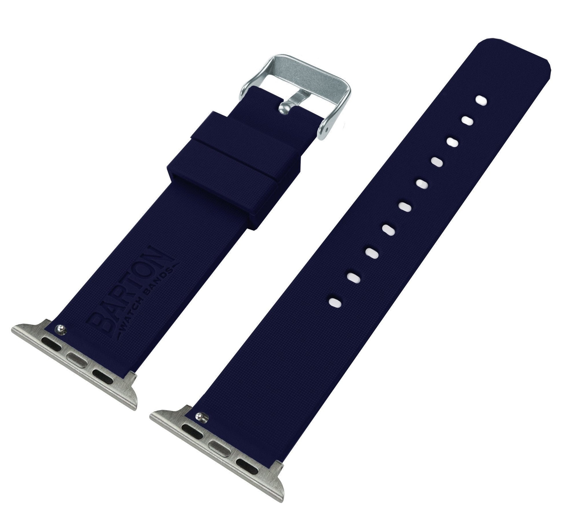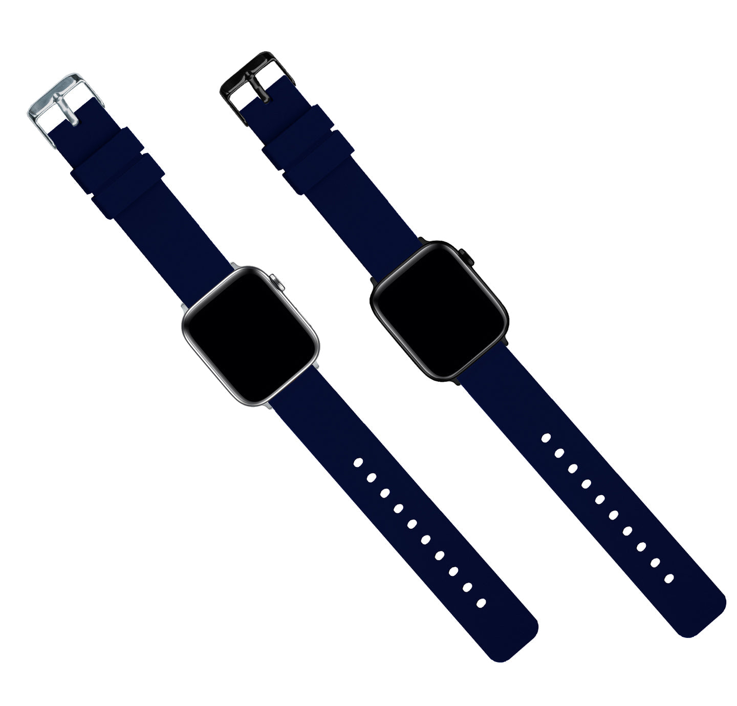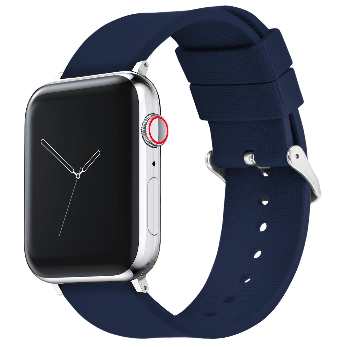 These silky soft silicone watch bands are the perfect complement to any Apple Watch. This navy blue Apple Watch band is crafted from the highest quality high tensile silicone and stainless steel hardware, making it silky smooth, yet durable.