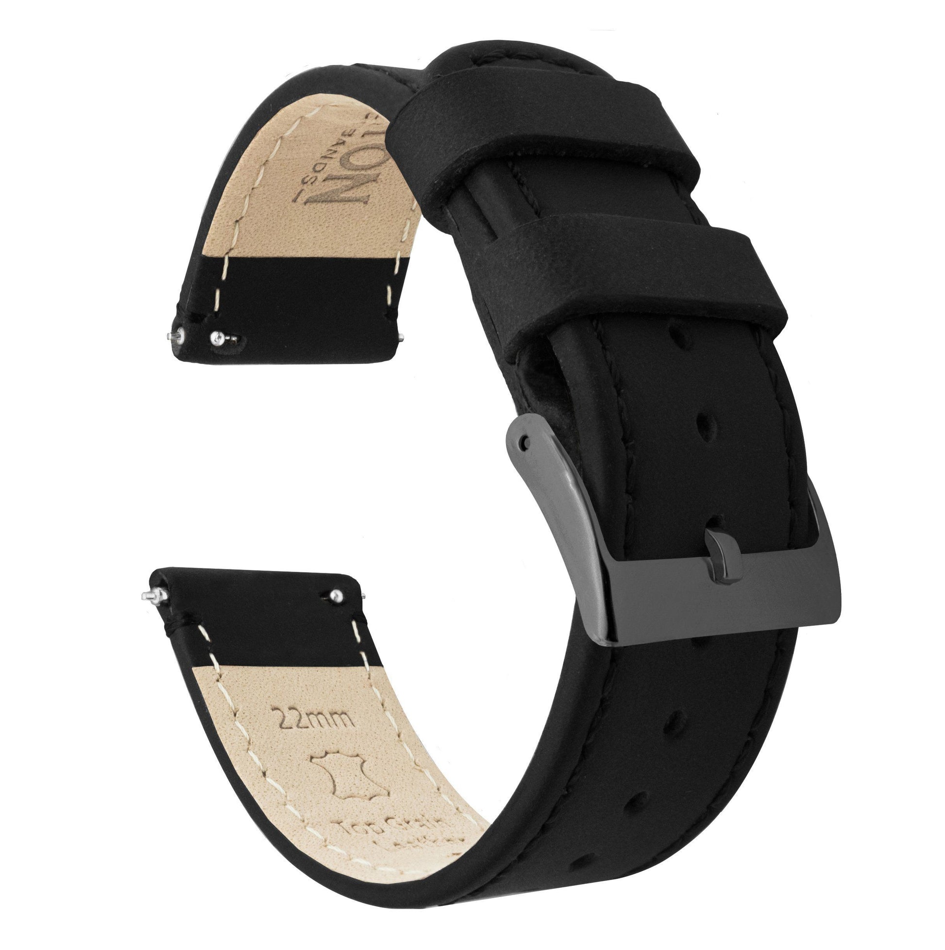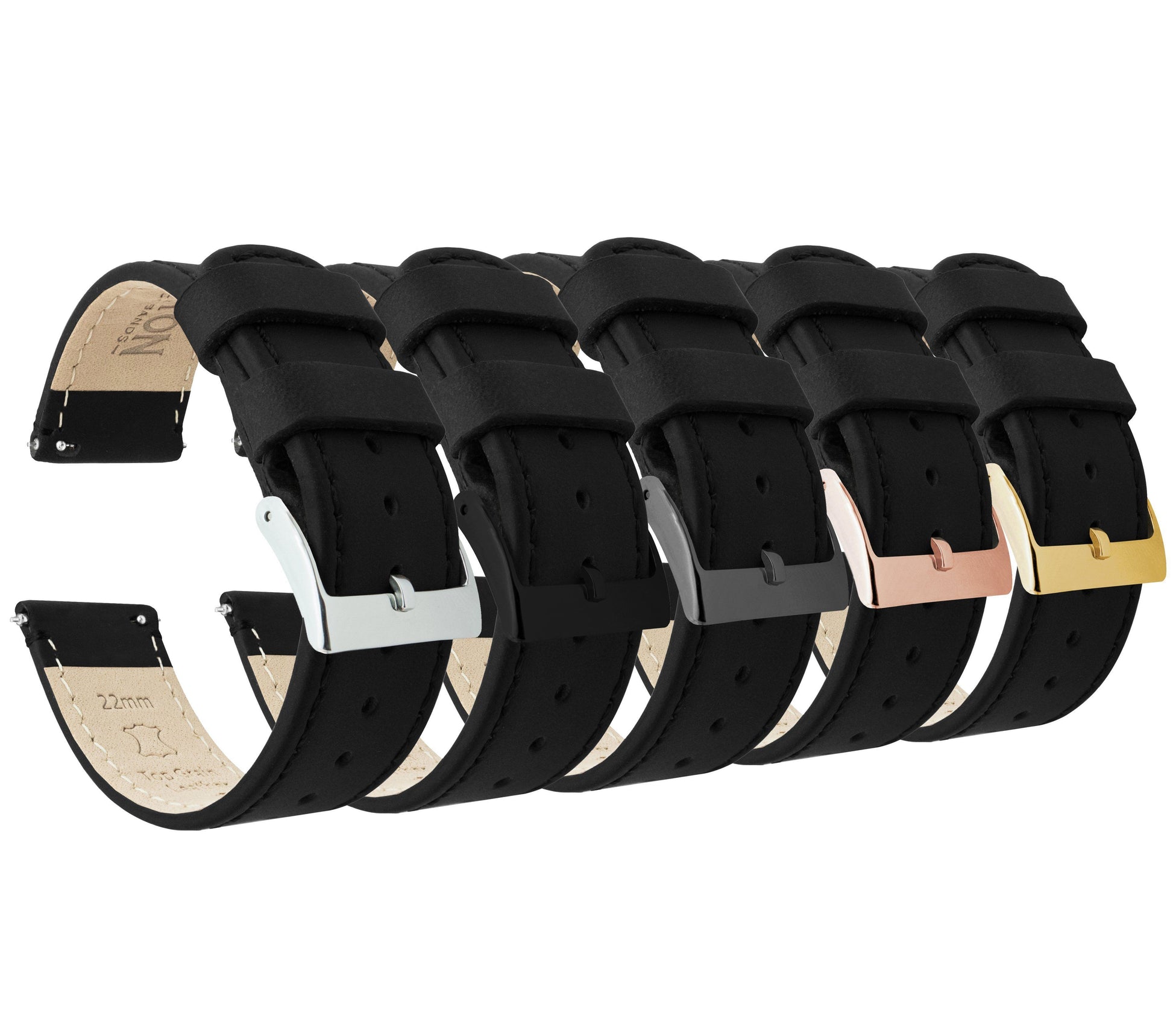 Our Black Leather Quick Release watch bands install in less time than it takes to shake a martini. Crafted from hand-selected top grain leather, this truly is "The Strap Your Watch Deserves." Pair this black leather watch strap with our Silicone or Canvas Quick Release to take full advantage of the opportunity to 'Switch it Up' between your workplace and the gym.