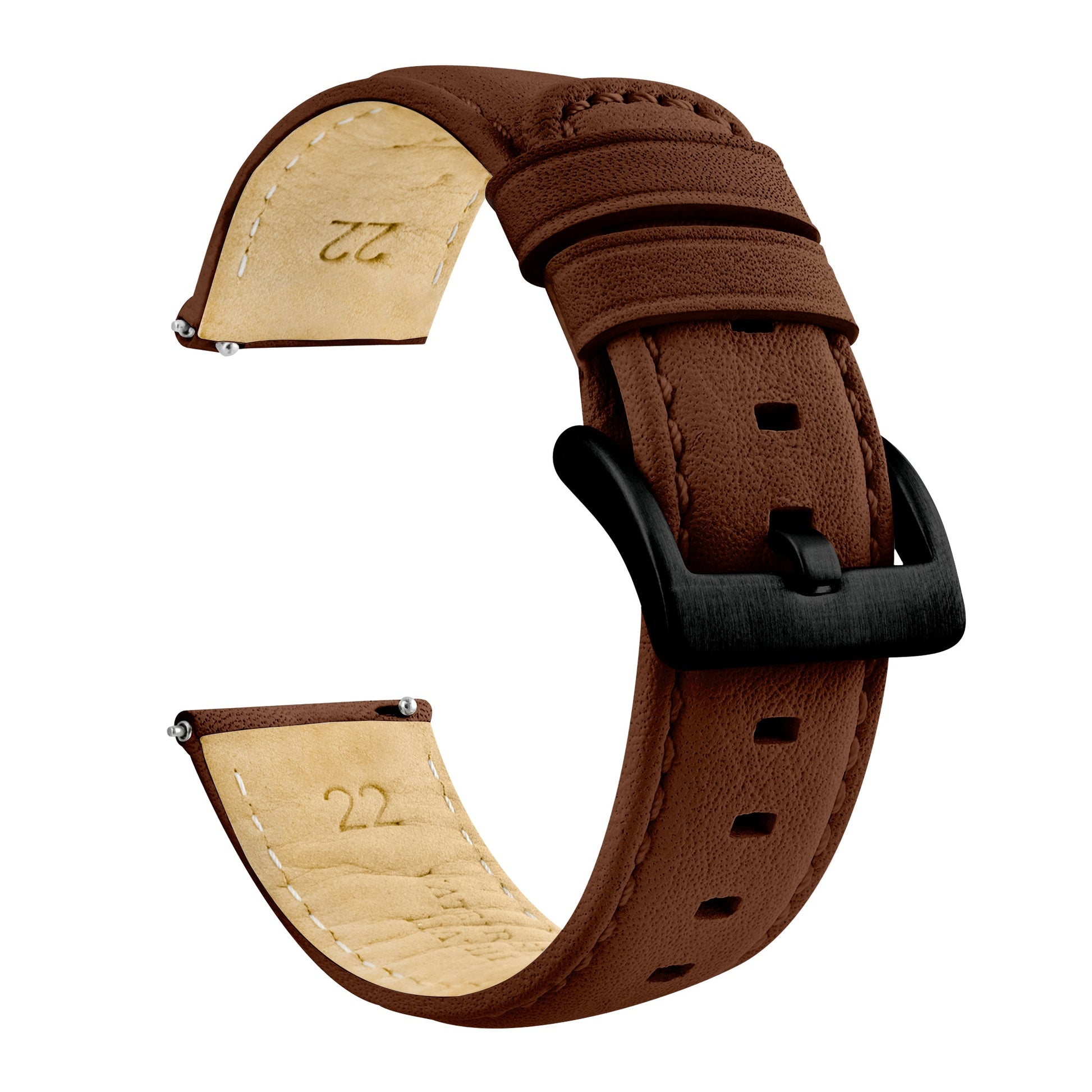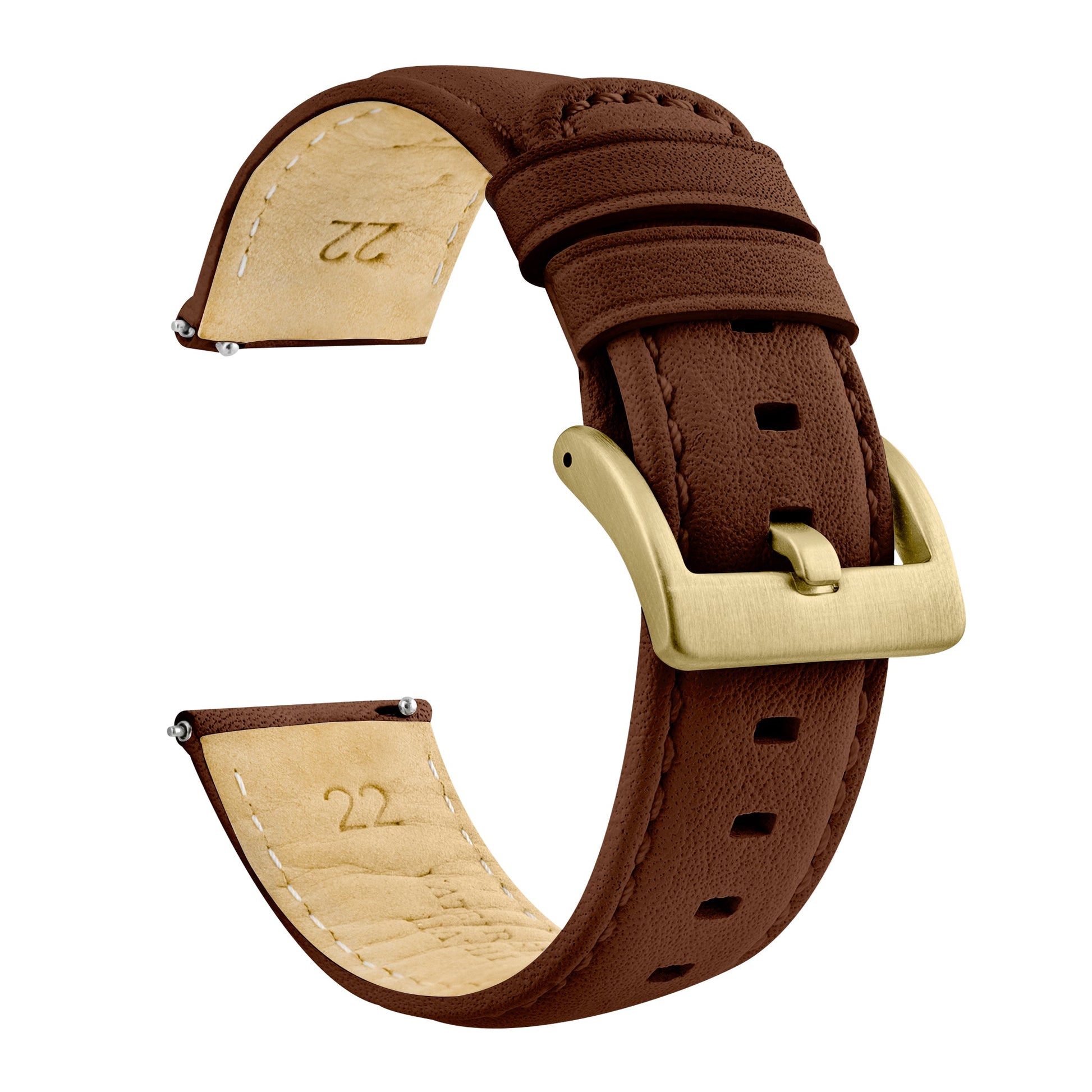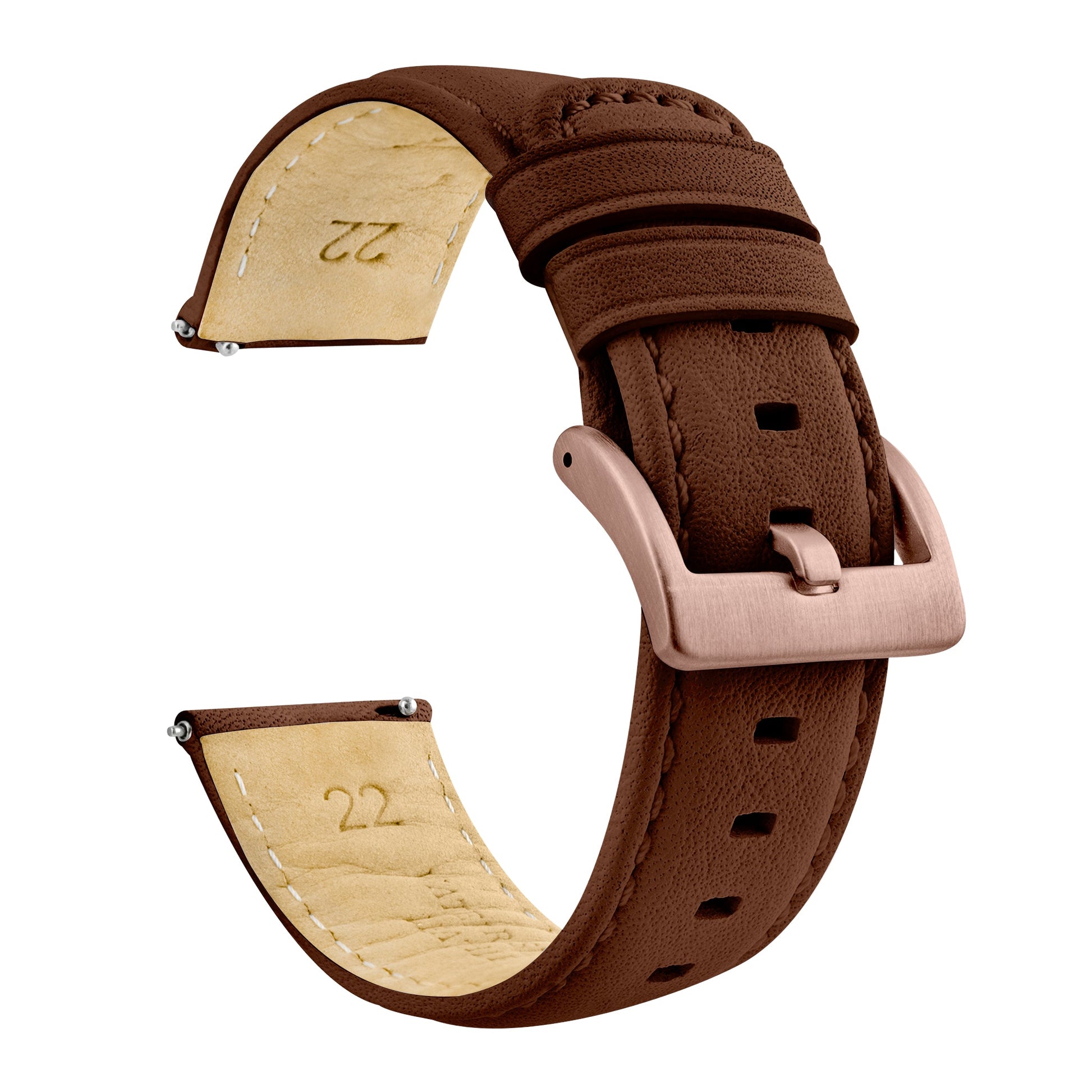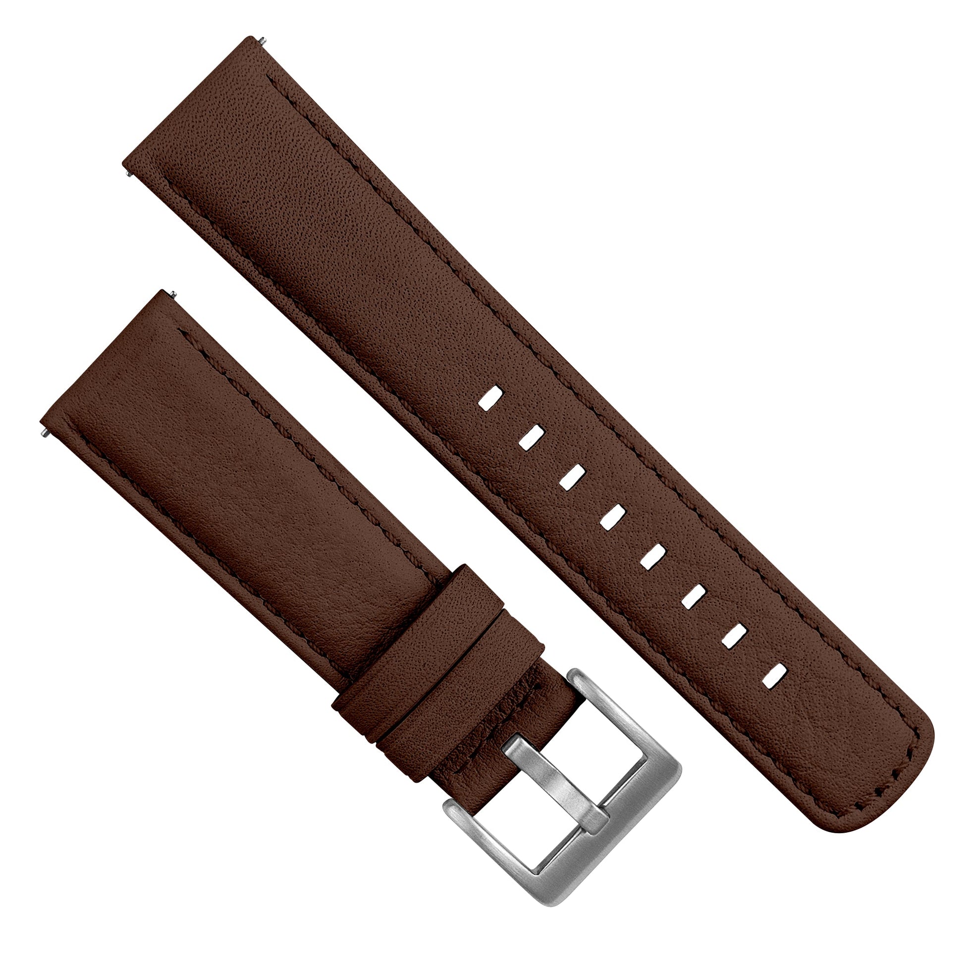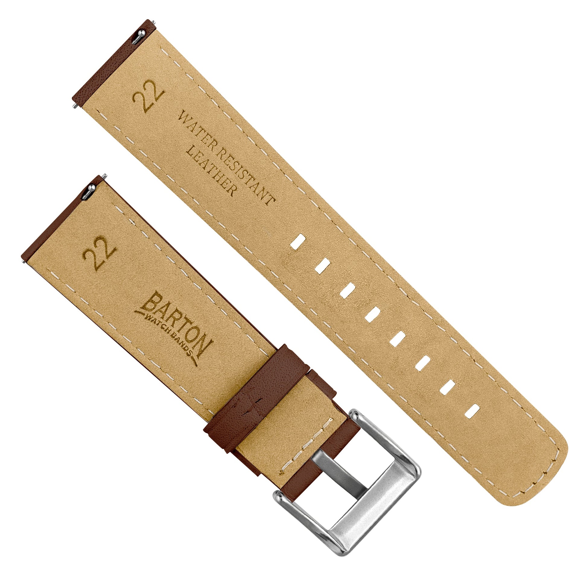 Light Brown Water Resistant Leather Brown Stitching Watch Band