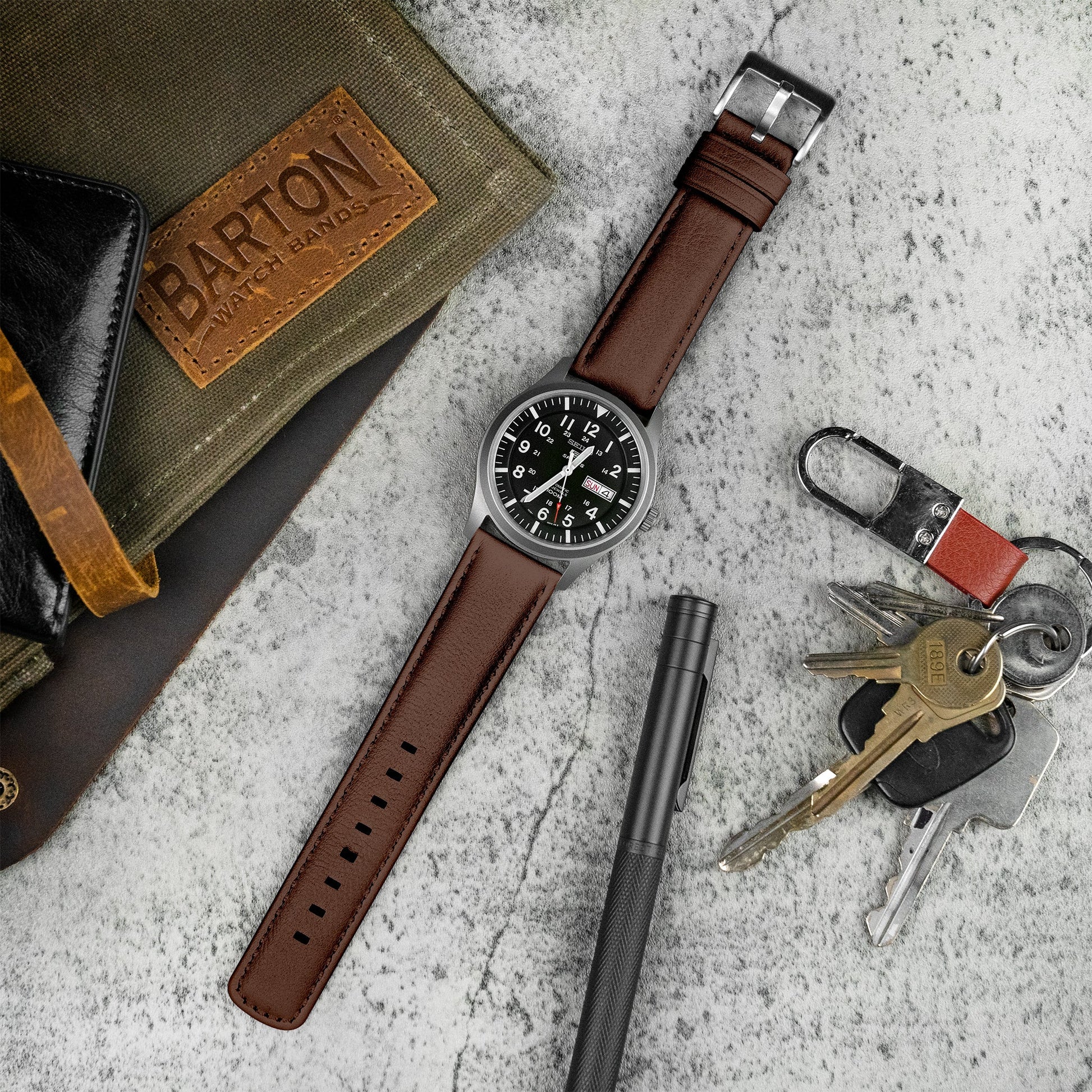 So you need a watch band that can take you through your day with style and reliability? Meet our Performance Leather Collection. This watch band is water-resistant and sweat-resistant, so you'll be ready for anything. It features Pittards WR100X™ Water-Resistant Leather and our classic stainless steel buckle, which provides strength when needed while maintaining elegance at all times - especially if things get busy or unexpected (which they always do).