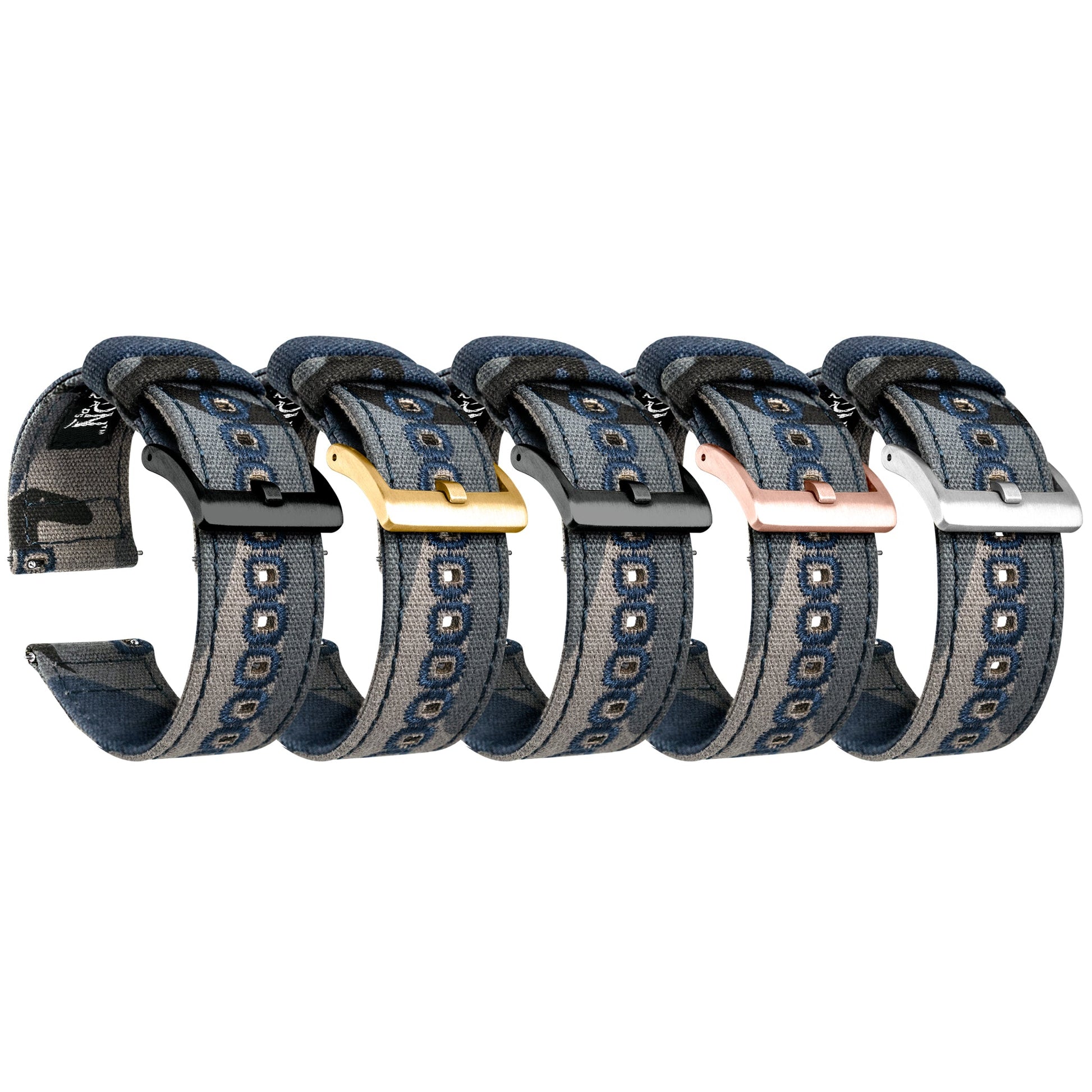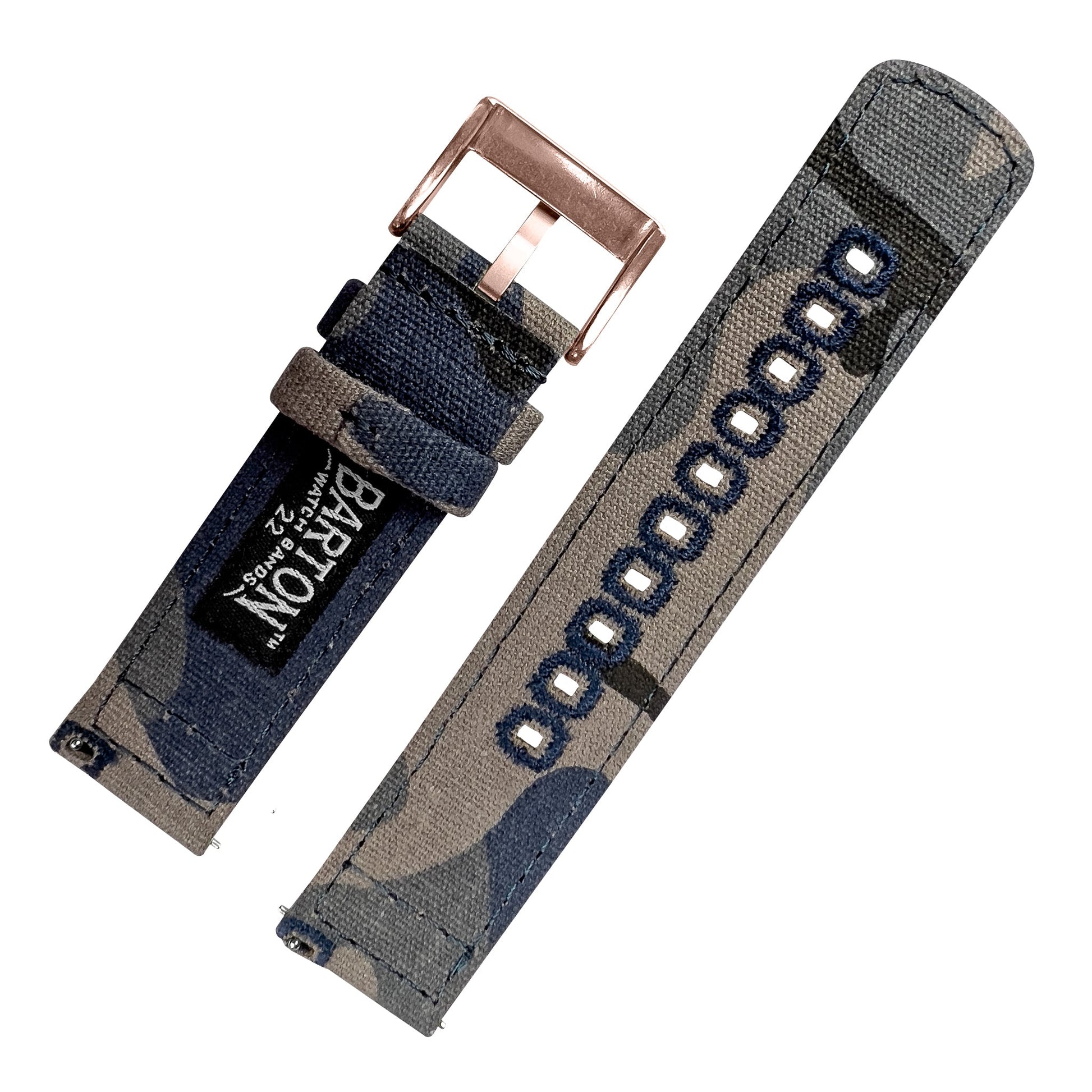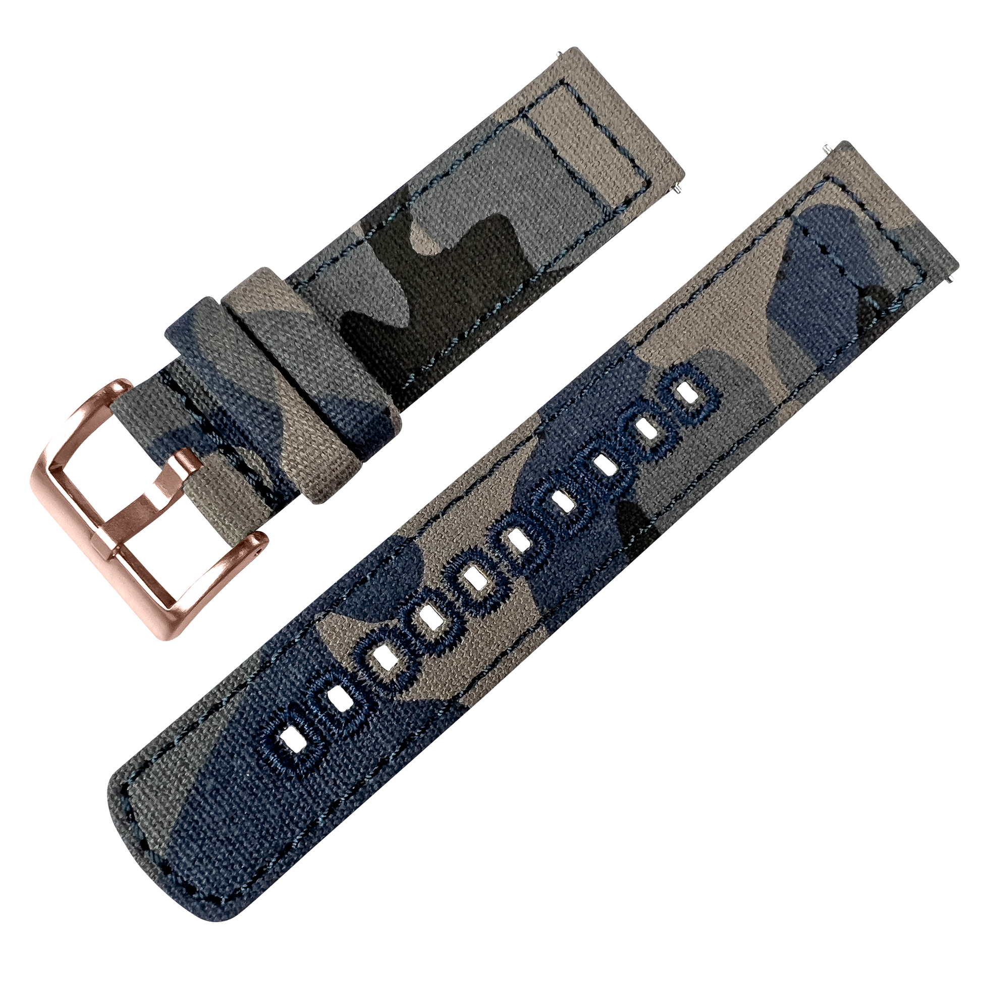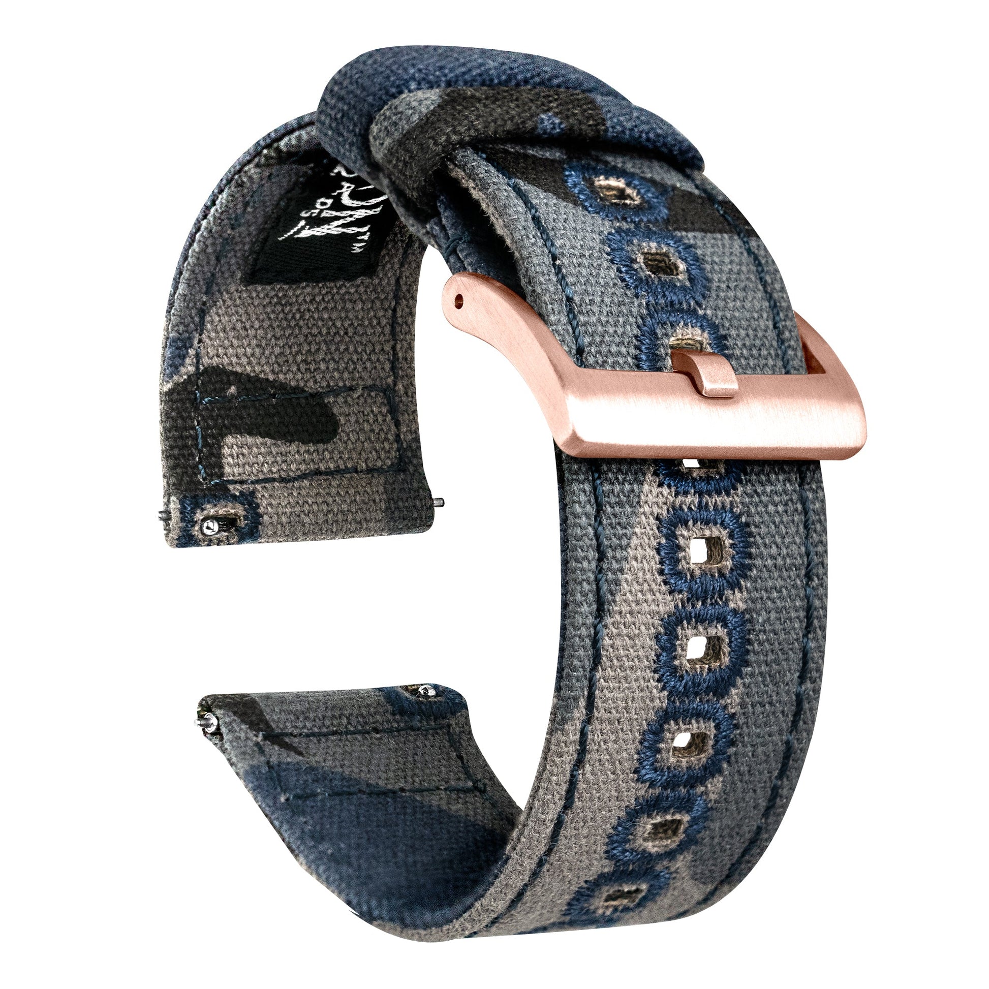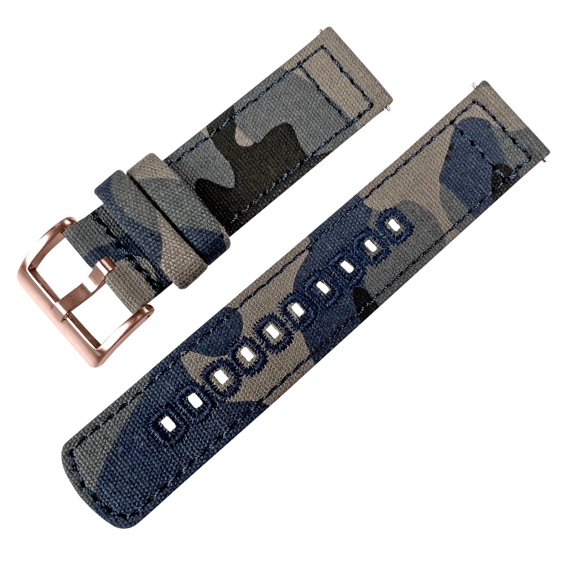 Our Canvas Quick Release watch bands are meticulously crafted from highly durable canvas and embroidered for style and strength. This camouflage-print canvas watchband adds character to any timepiece and can be swapped in and out without any tools! Pair this camouflage watch strap with our Silicone or Leather Quick Release to take full advantage of the opportunity to 'Switch it Up.'