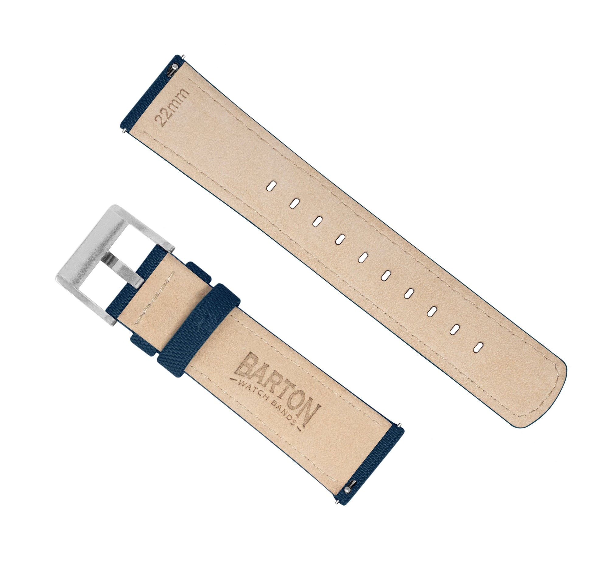 Our navy blue Sailcloth Quick Release watch band features a premium nylon weave with smooth leather backing. Each band is designed with padding for comfort and durability, a 316L surgical grade brushed stainless steel buckle, and a 2mm taper from watch head to buckle. Swap out in just a few seconds and without tools! Pair this sailcloth watch band with our Leather, Elite Silicone or Canvas quick release bands to take full advantage of the opportunity to 'Switch it Up' on the go.