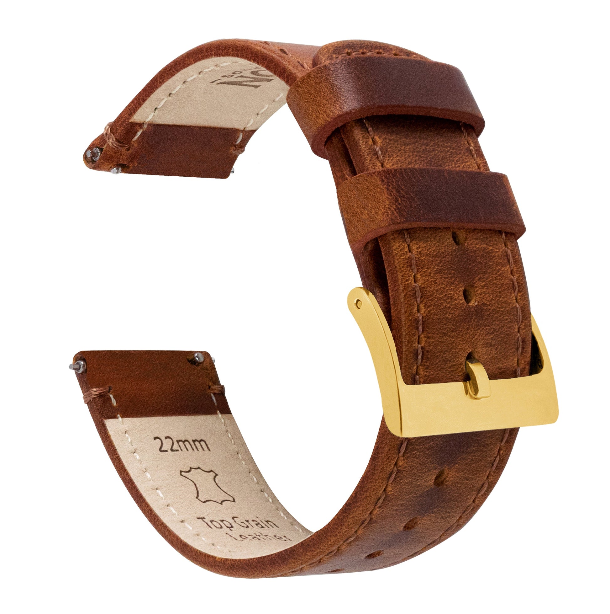 Our Weathered Brown Leather Quick Release watch bands install in less time than it takes to shake a martini. Crafted from hand-selected top grain leather, this truly is "The Strap Your Watch Deserves." Pair this Weathered Brown Leather watch strap with our Silicone or Canvas Quick Release to take full advantage of the opportunity to 'Switch it Up' between your workplace and the gym.