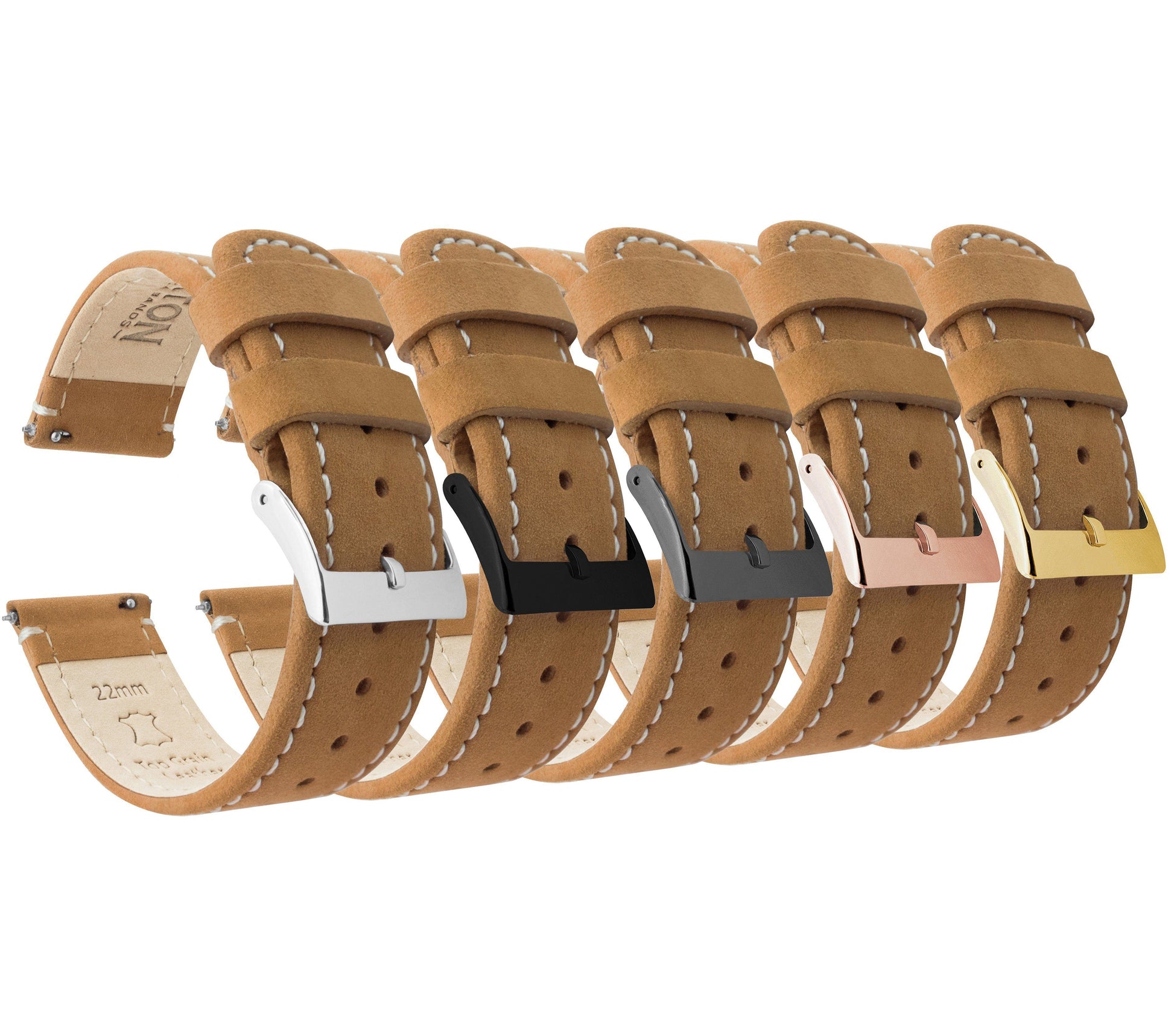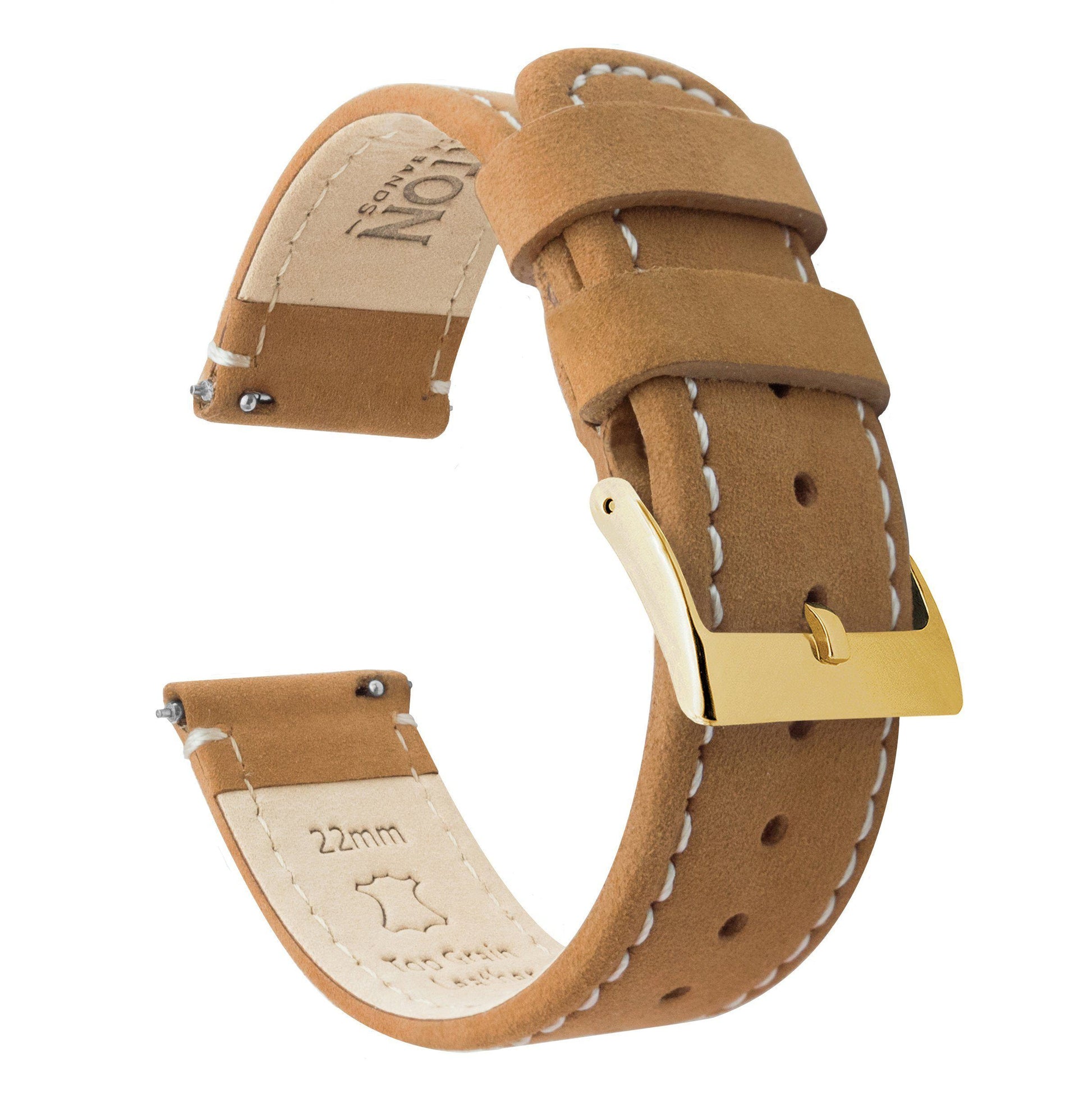 Gingerbread Leather White Stitching Quick Release Watch Band