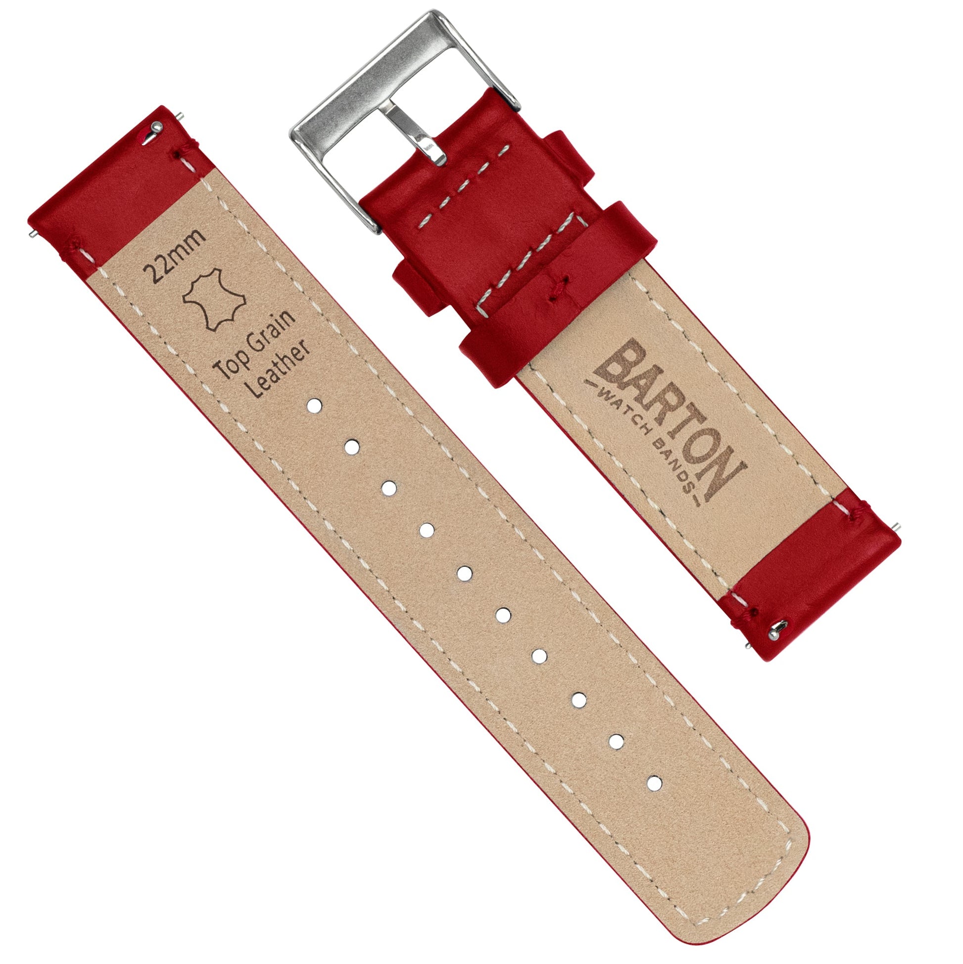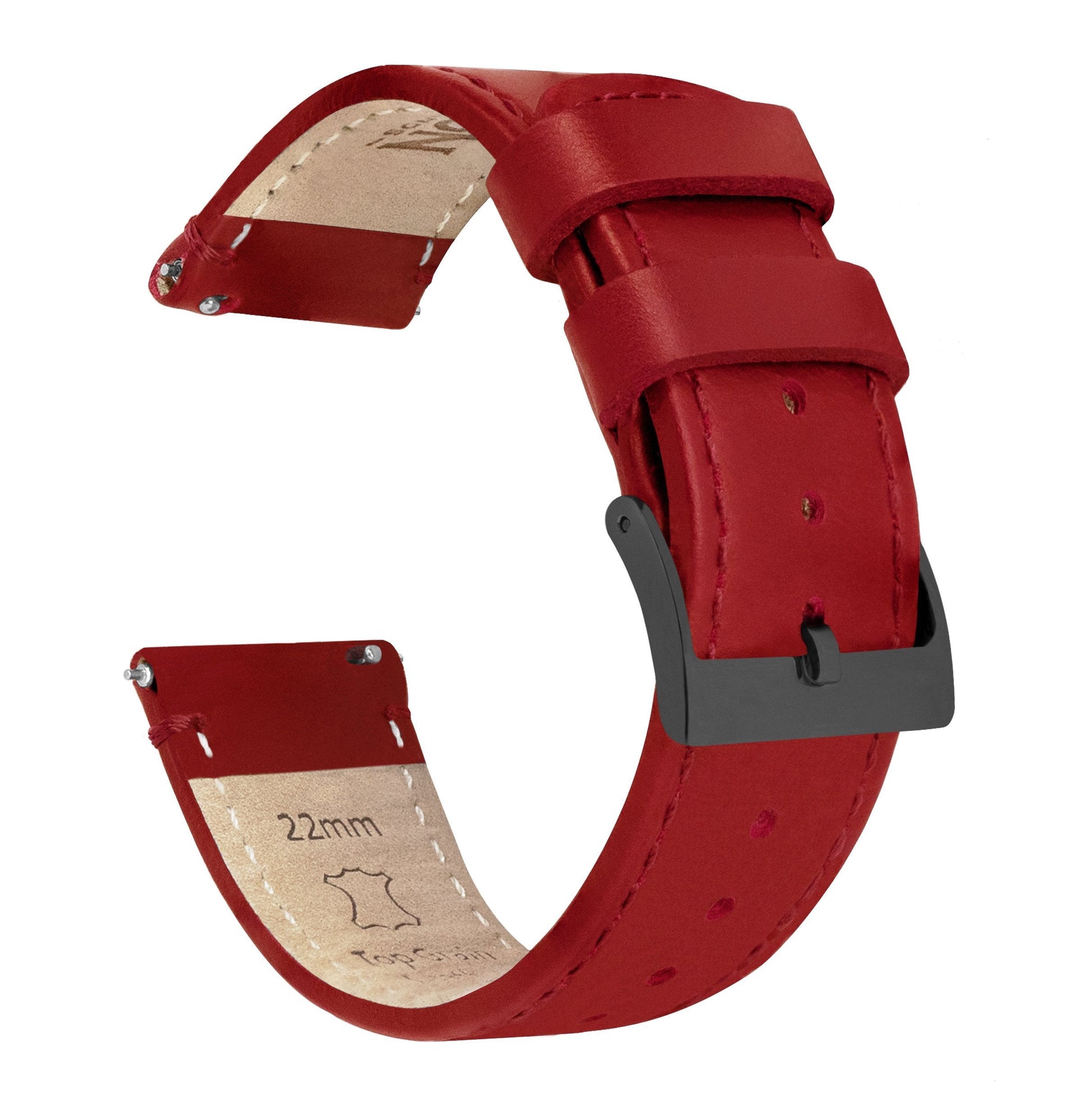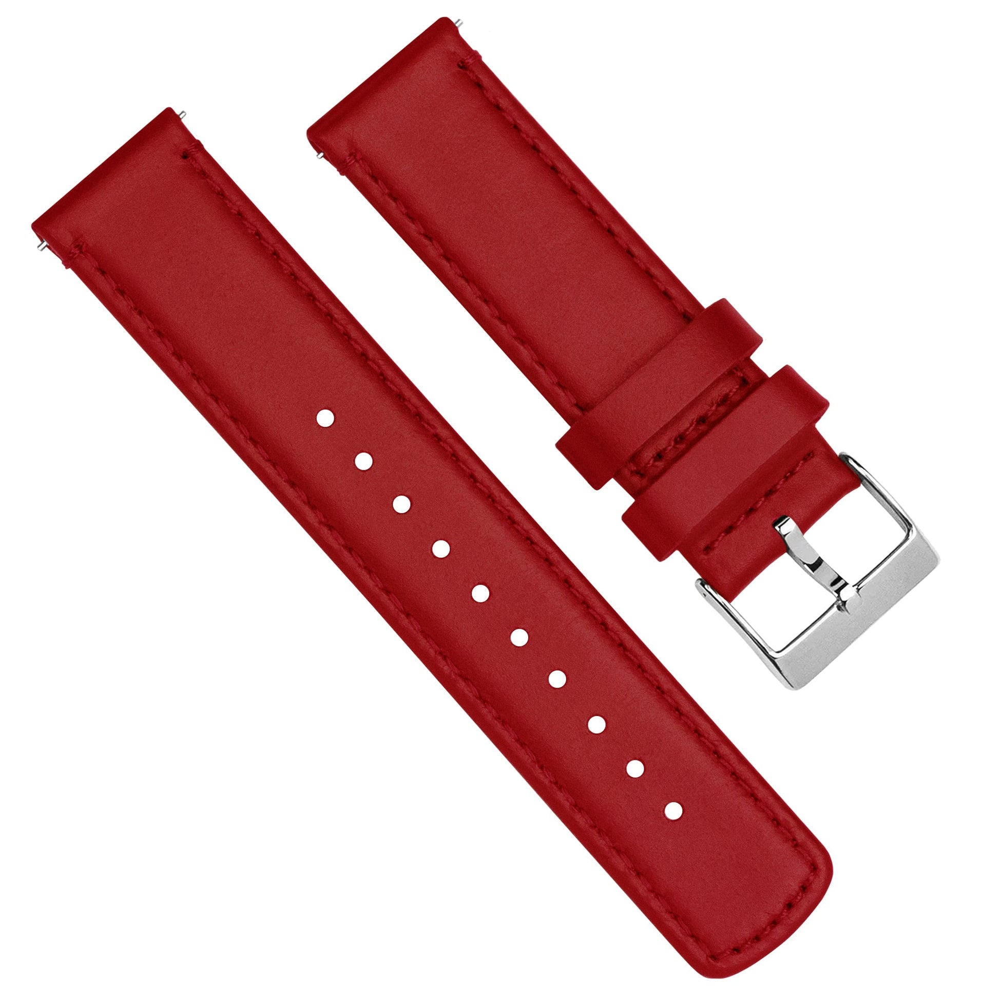 Our Red Leather Quick Release watch bands install in less time than it takes to shake a martini. Crafted from hand-selected top grain leather, this truly is "The Strap Your Watch Deserves." Pair with our Silicone Quick Release to take full advantage of the opportunity to 'Switch it Up' between your workplace and the gym.