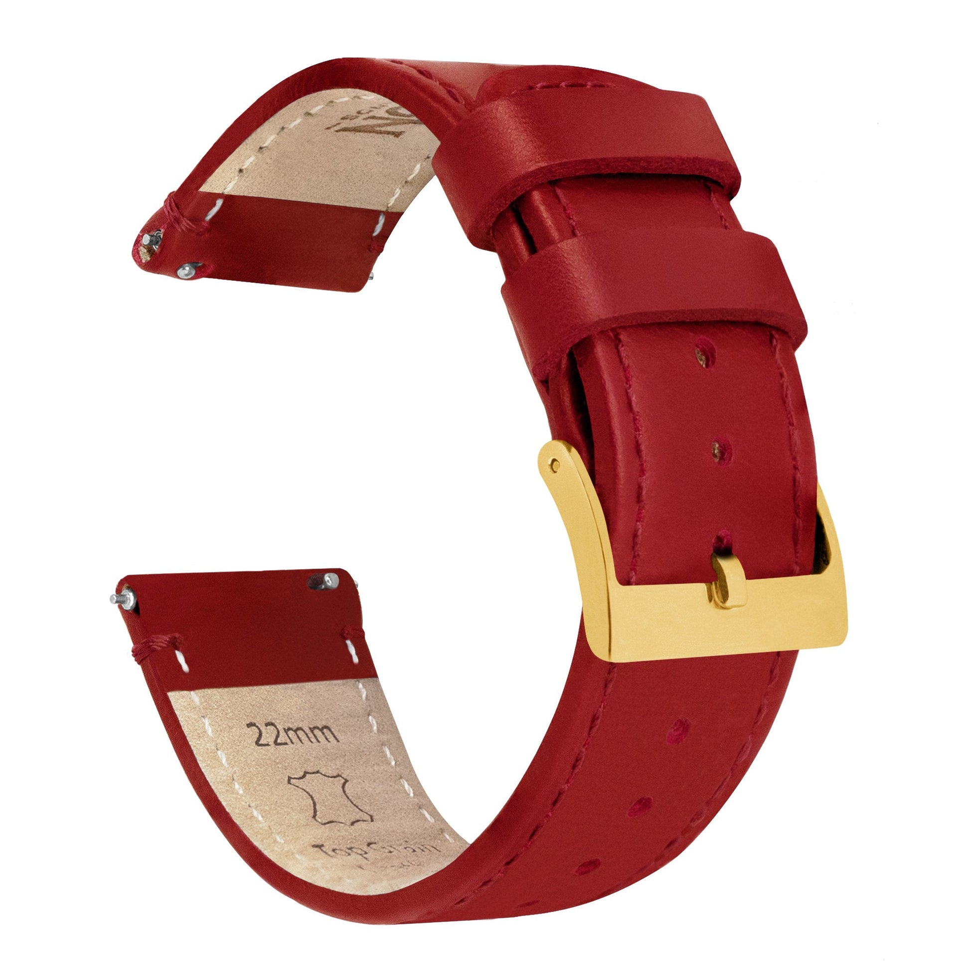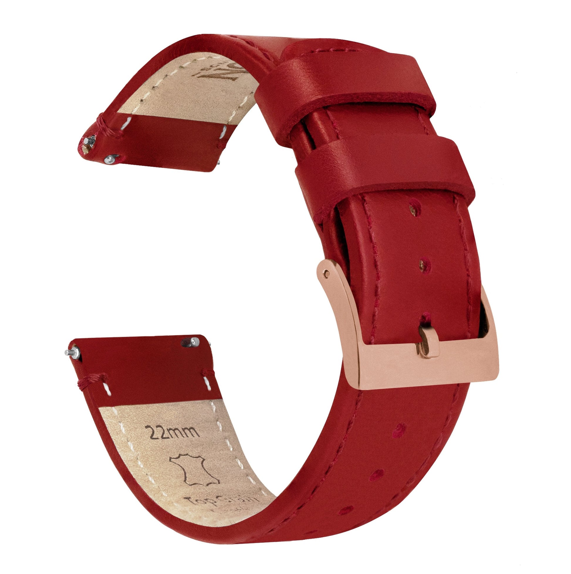 Crimson Red Leather Red Stitching Watch Band