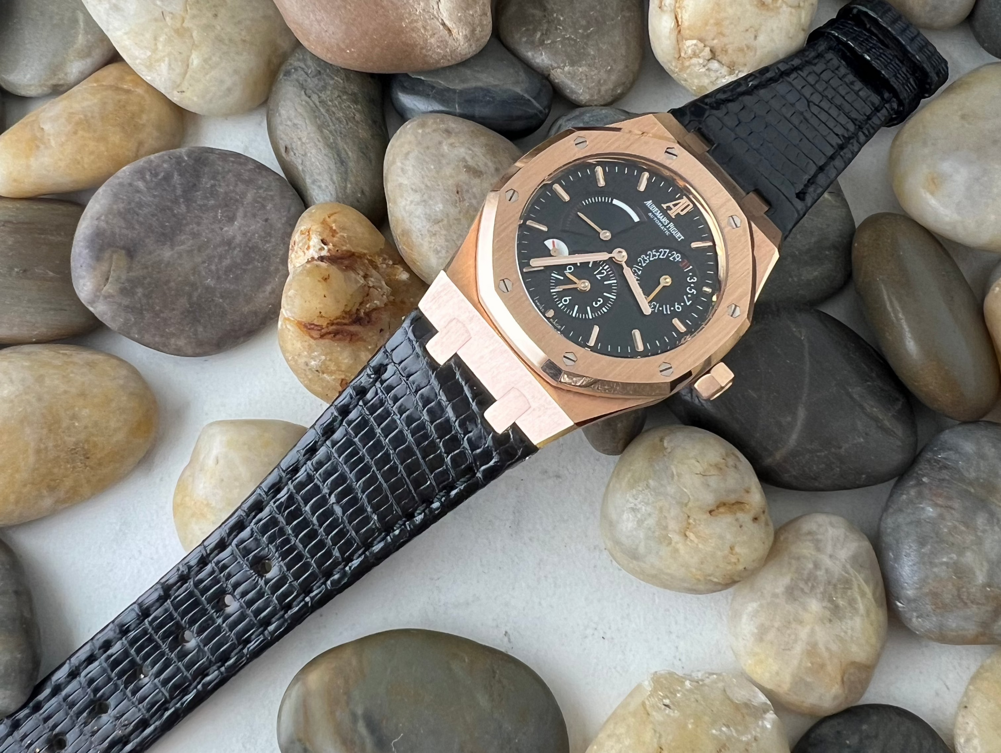 Lucertole Shiny Black Lizard Leather Strap For Audemars Piguet Royal Oak 39mm and 41mm