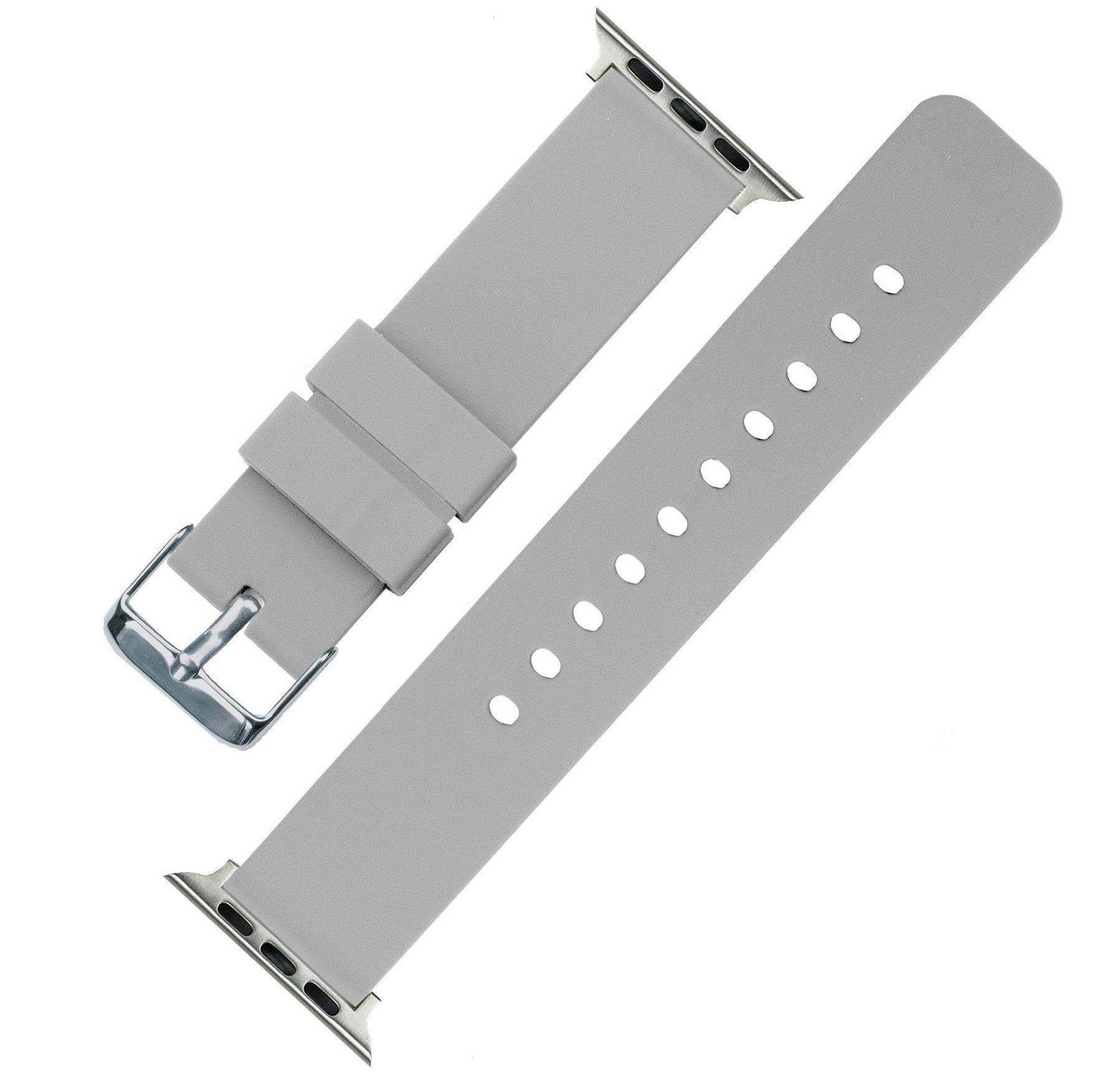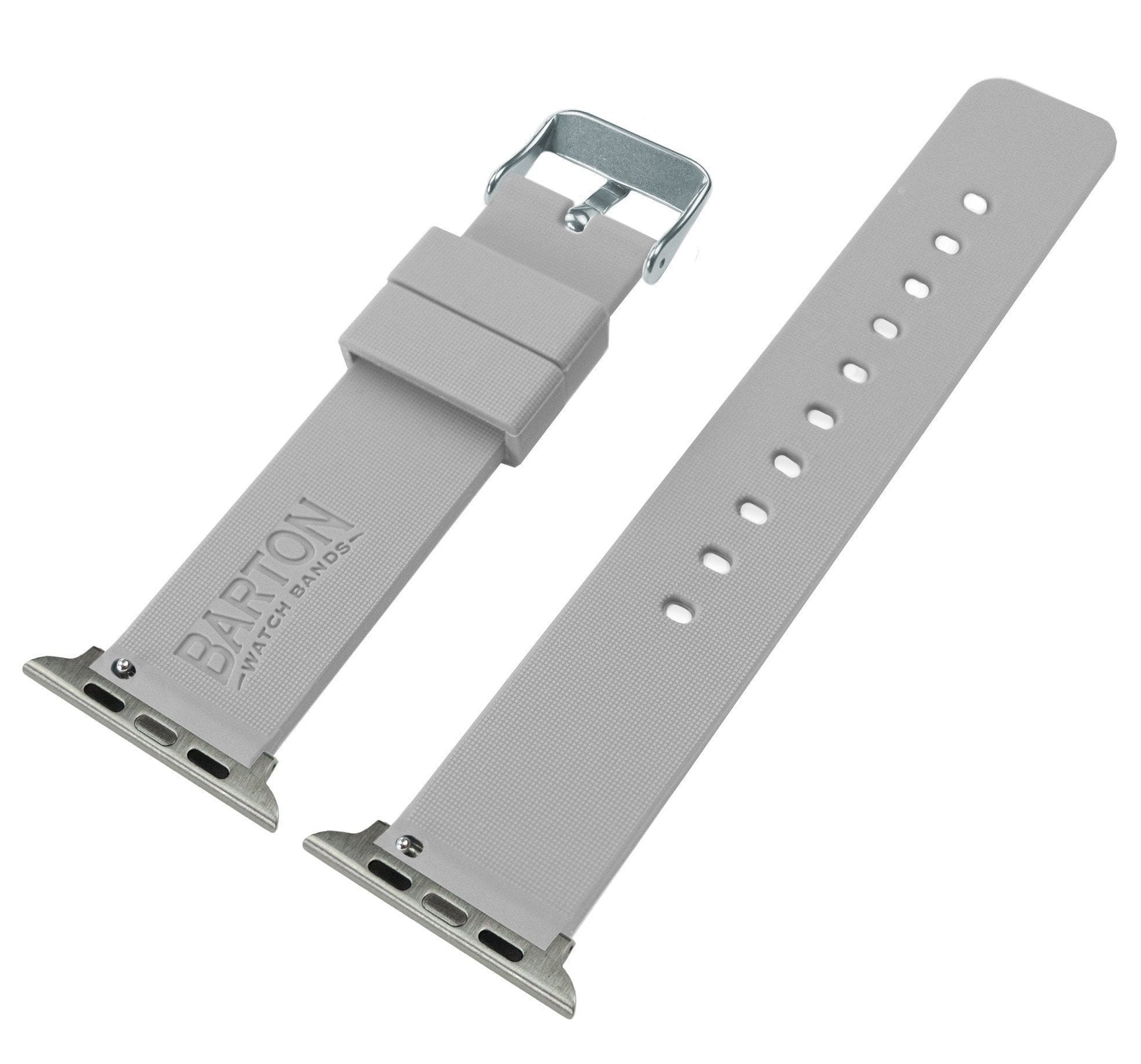 These silky soft silicone watch bands are the perfect complement to any Apple Watch. These Cool Grey Apple Watch straps are crafted from the highest quality high tensile silicone and stainless steel hardware, making them silky smooth, yet durable.