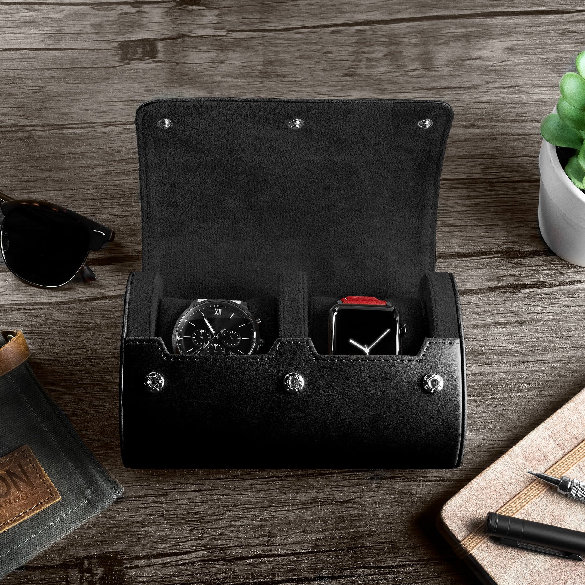 When it comes to measuring time, we know you’re looking for the perfect product that will help you conquer your mission in style with no compromises. Introducing our Recycled Leather Watch Roll Travel Case; A smooth recycled leather case that protects your watch wherever you go. Featuring luxurious stitching, this sturdy case is durable and stylish. With a sleek look and top-of-the-line materials, our Recycled Leather Watch Roll Travel Case is a portable solution that makes watch separation anxiety a thing of the past.